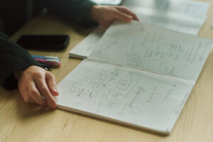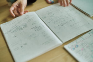 山下:私は初見では方眼罫がいいかなと思ったんですけど、使ってみたら無地がしっくりきました。枠がない分、思考の動きに合わせて自由に書ける。広がるスペースが、そのまま発想につながるんですよね。